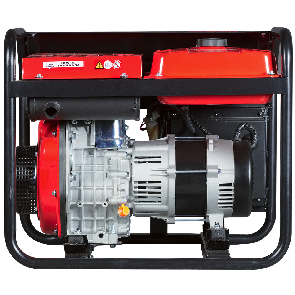 Синхронный альтернатор с медными обмотками ротора и статора оснащен системой регулировки выходного напряжения (AVR), что гарантирует стабильное выходное напряжение и частоту тока. Двигатель и альтернатор установлены на раму через демпферы позволяющие значительно гасить вибрации во время работы и перемещения генератора, увеличивая долговечность конструкции.