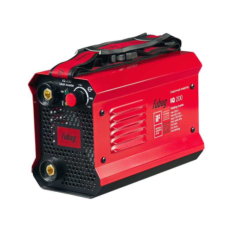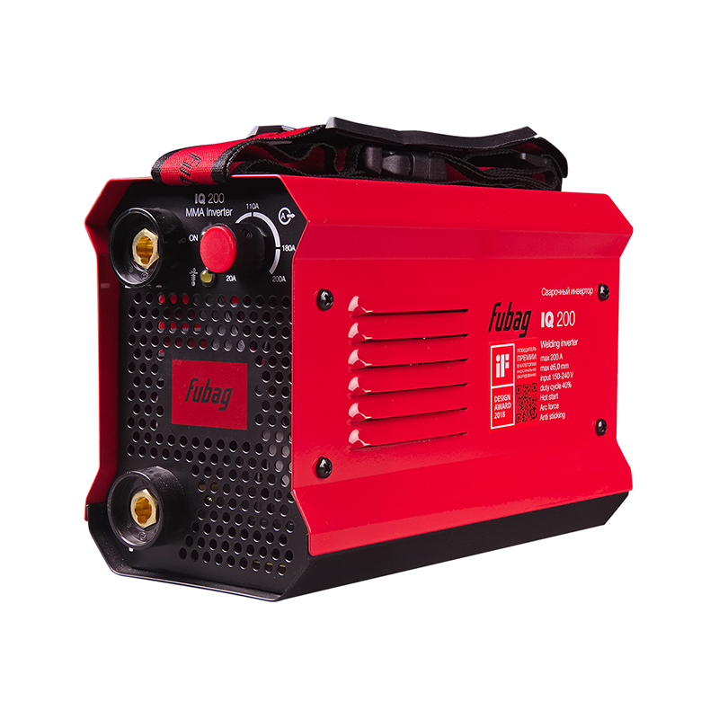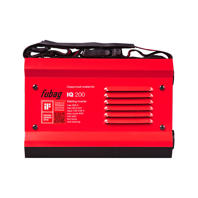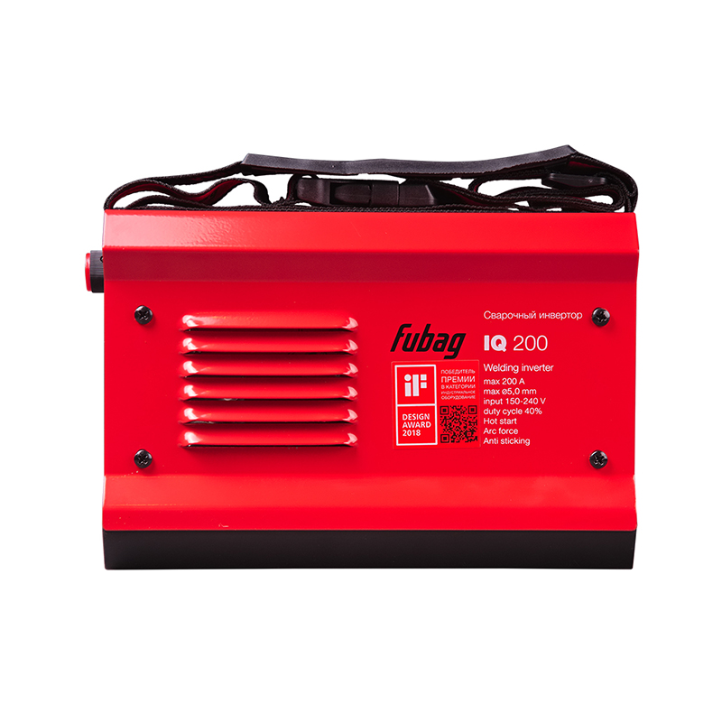Продолжительность включения (ПВ) составляет40% при 40С. Эти данные приведены в соответствии с европейским стандартом EN60974-1 при внешней температуре 40С. Часто на рынке используется значение ПВ при температуре окружающей среды 20 град.С: чем ниже температура, тем выше ПВ. При температуре 20С сварочный инвертор Fubag IQ 200 может варить практически постоянно, т.к. за паузу на смену электродов аппарат успевает охладиться. Модель IQ 200 в 2018 году победила в международном конкурсе промышленного дизайна IF в Германии. В России это единственный аппарат, обладающий такой престижной международной наградой.