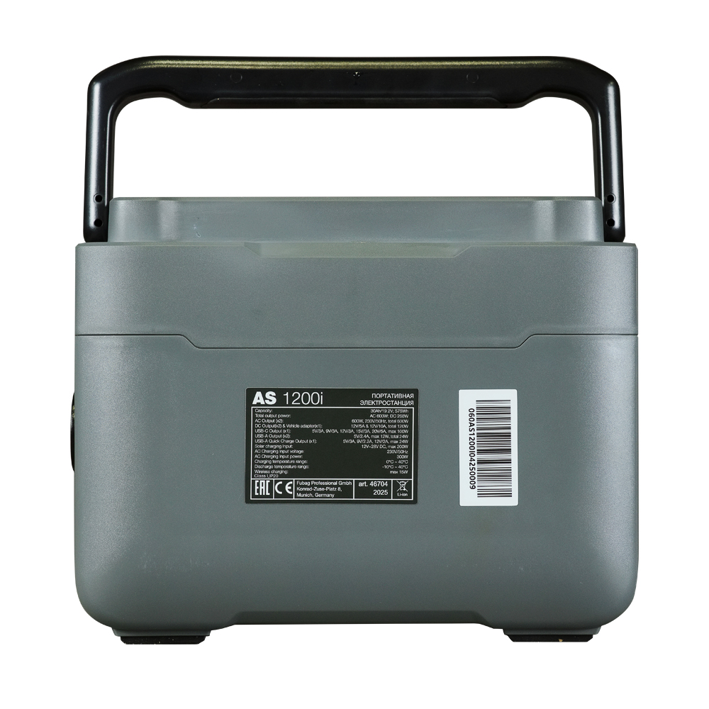 FUBAG AS 1200i — компактная и надёжная портативная электростанция на литий-железо-фосфатных (LiFePO4) батареях ёмкостью 576 Вт·ч. Она выдаёт 600 Вт номинальной мощности и выдерживает пиковую нагрузку до 1200 Вт. Благодаря чистой синусоидальной форме напряжения станция безопасна для чувствительной электроники, а вес всего 9,3 кг и удобная ручка делают её практичным спутником в дороге и на отдыхе.