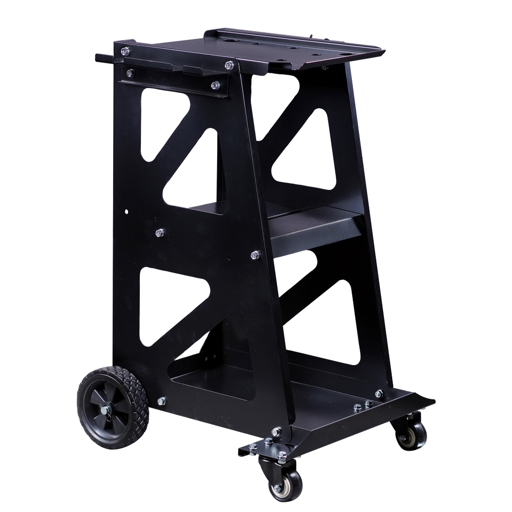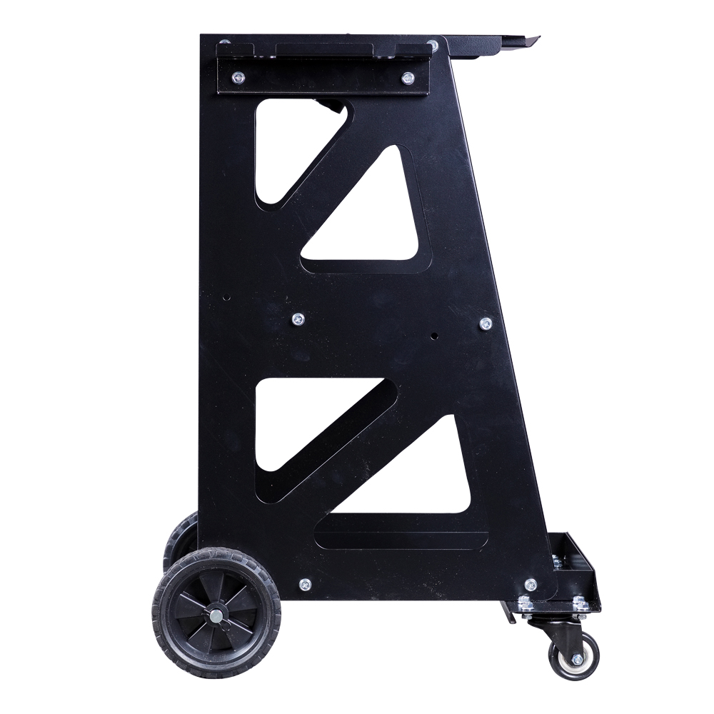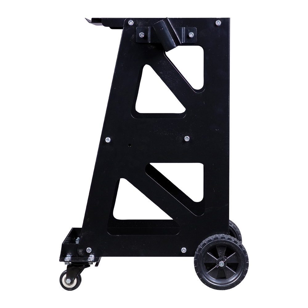Средняя полка с поперечным углублением предназначена для метизов и инструмента. Нижняя полка с высокими бортиками по периметру предотвращает выпадение деталей. Боковые кронштейны позволяют закрепить сварочный пистолет и два обратных молотка.