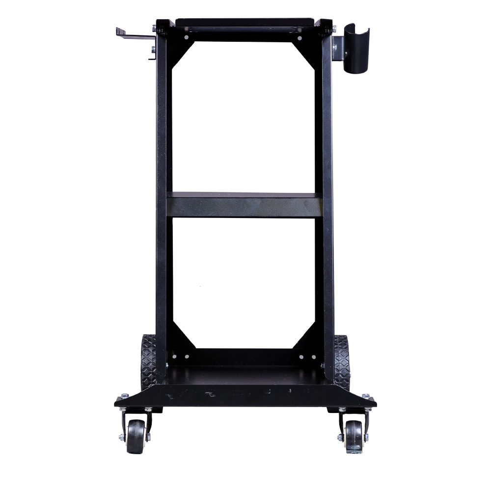 Конструкция на четырех колесах: 2 передних поворотных, 2 задних фиксированных на оси. Верхняя площадка с 4 отверстиями под резиновые ножки аппарата обеспечивает надежную фиксацию. Перемещение осуществляется за ручку самого аппарата.